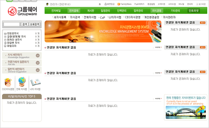 - 지식경영은 그룹웨어의 업무와 유기적/통합적으로 연계.