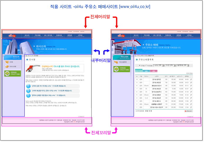 웹사이트를 제작할 때 상단메뉴, 좌/우측메뉴, 하단의 카피문구 등 공통적으로 들어가는 부분들이 많이 있습니다.