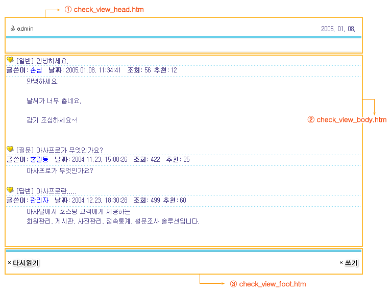 ② check_view_body.htm : 선택된 게시물 수만큼 반복되는 부분으로 게시물 상세정보를 포함한 파일입니다.