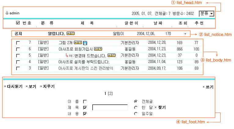 ① list_head.htm : 목록화면 시작부터 게시물 이전까지의 파일입니다.