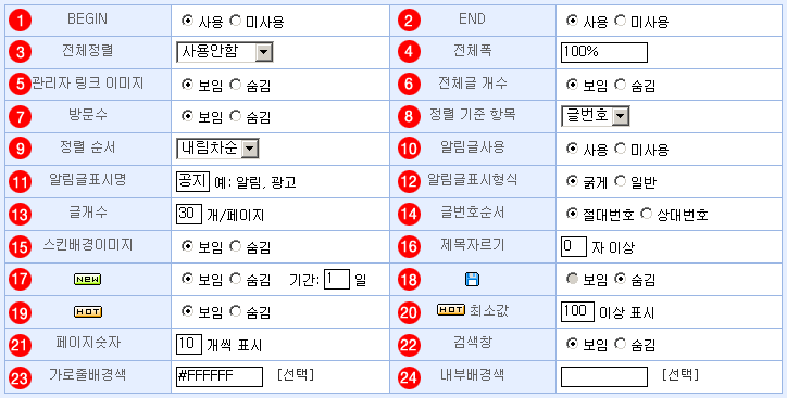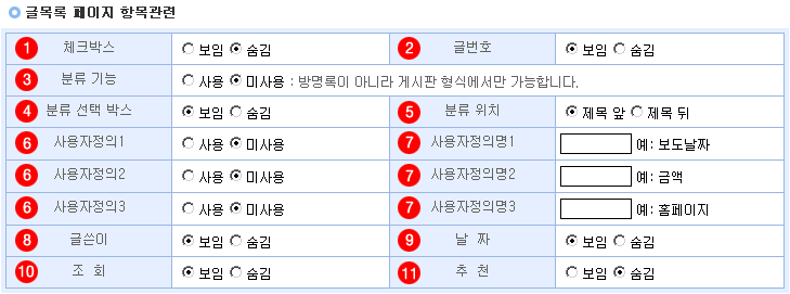 2. 글번호 : 목록에서 글번호를 숨길 수 있습니다.