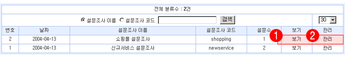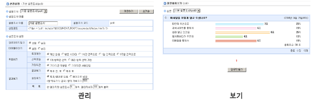 2. 관리 : 설문조사에 필요한 환경설정을 할 수 있습니다.