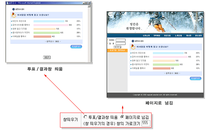 투표 결과를 새 창 뿐만 아니라 사이트내 페이지에서도 볼 수 있습니다.